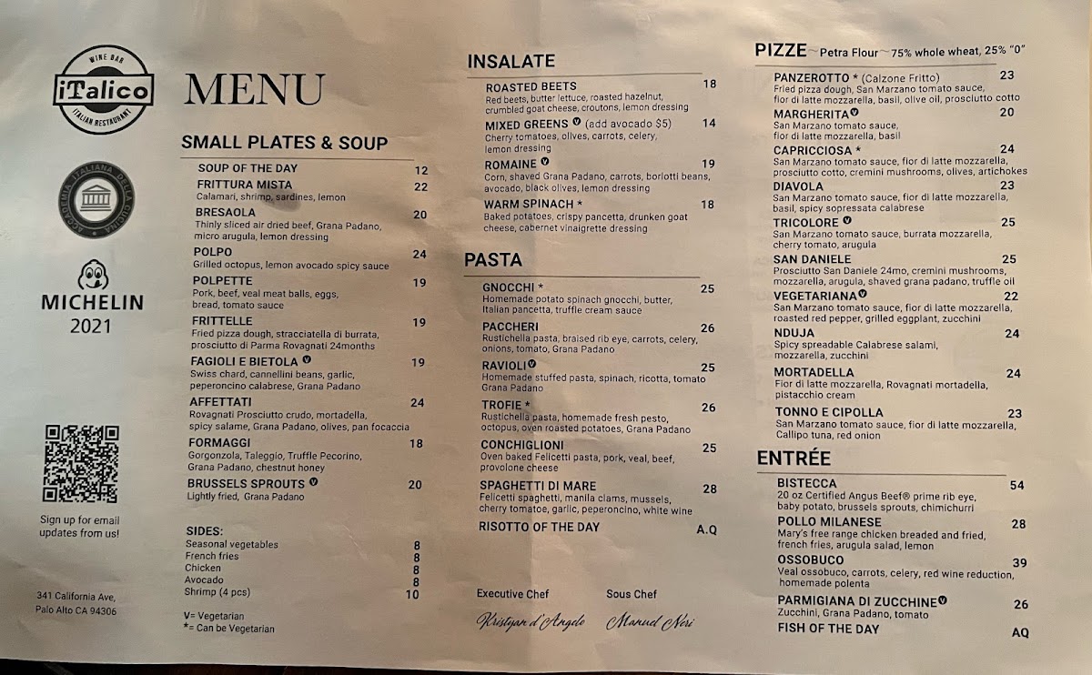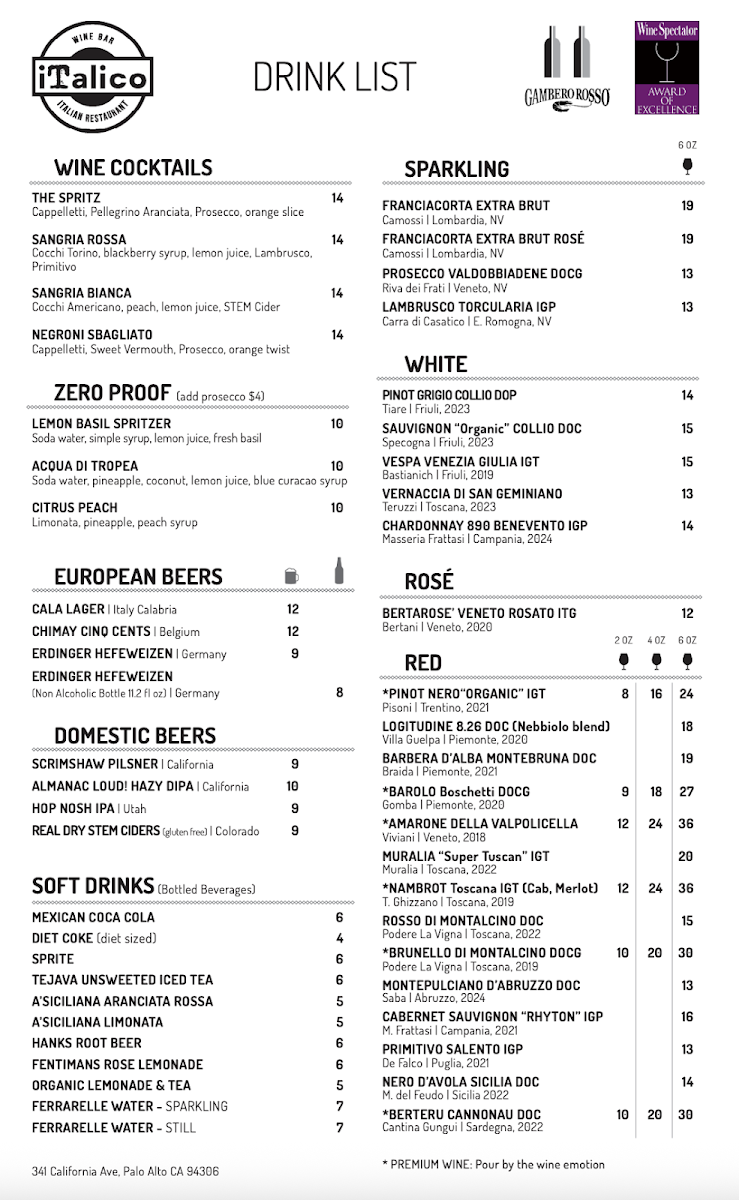 At Italico Menu, you’re in for a treat with a blend of flavors that are both comforting and sophisticated. Nestled in the heart of Palo Alto at 341 California Ave, this inviting spot serves up a delightful mix of Italian classics, from rich pastas to fresh salads. Whether you're craving a warm bowl of risotto or a perfectly grilled pizza, the menu caters to all tastes with a variety of options that promise to satisfy any hunger. The thoughtfully crafted dishes are paired with handpicked wines, making it a perfect place to relax and enjoy a meal with friends or family. With each dish made from the freshest ingredients, the menu ensures a delicious and memorable experience.